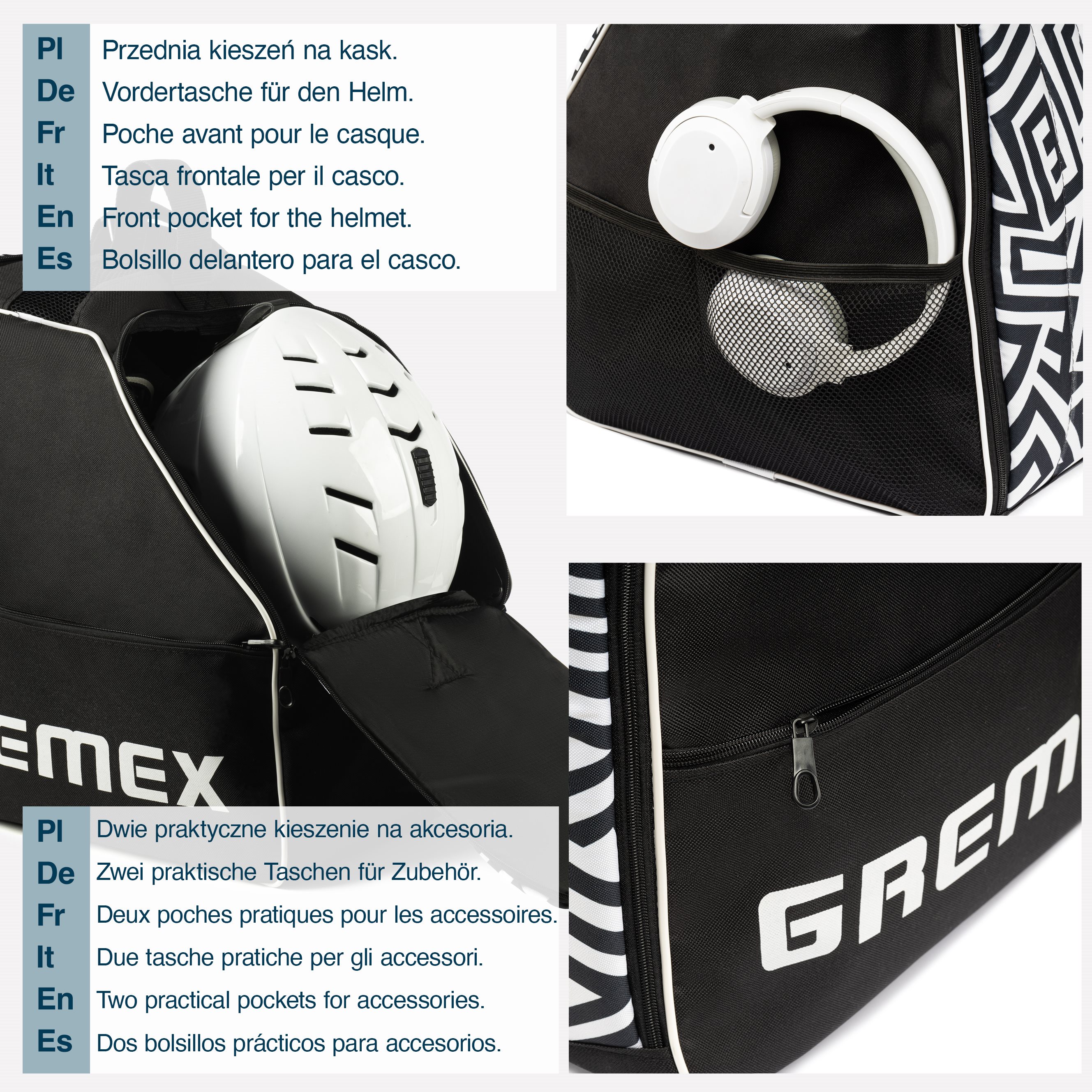 ⭐ Dodatkowa kieszeń zamykana na zamek na akcesoria typu rękawice, google, czapka