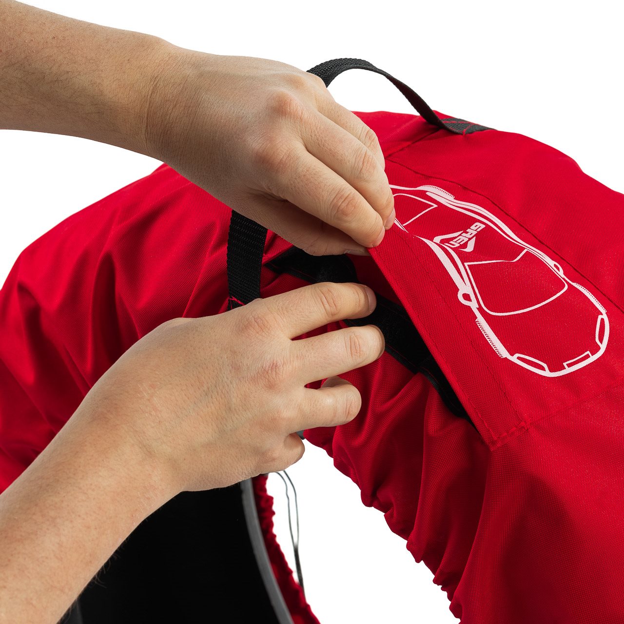 Pokrowiec wykonany jest z tkaniny poliestrowej o wysokiej gramaturze. Tkanina ta odporna jest na rozerwanie, jest łatwa w pielęgnacji oraz wykazuje właściwości wodoodporne.