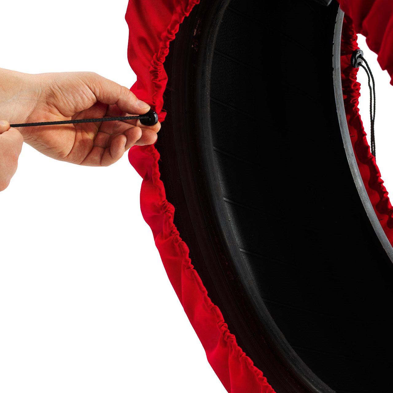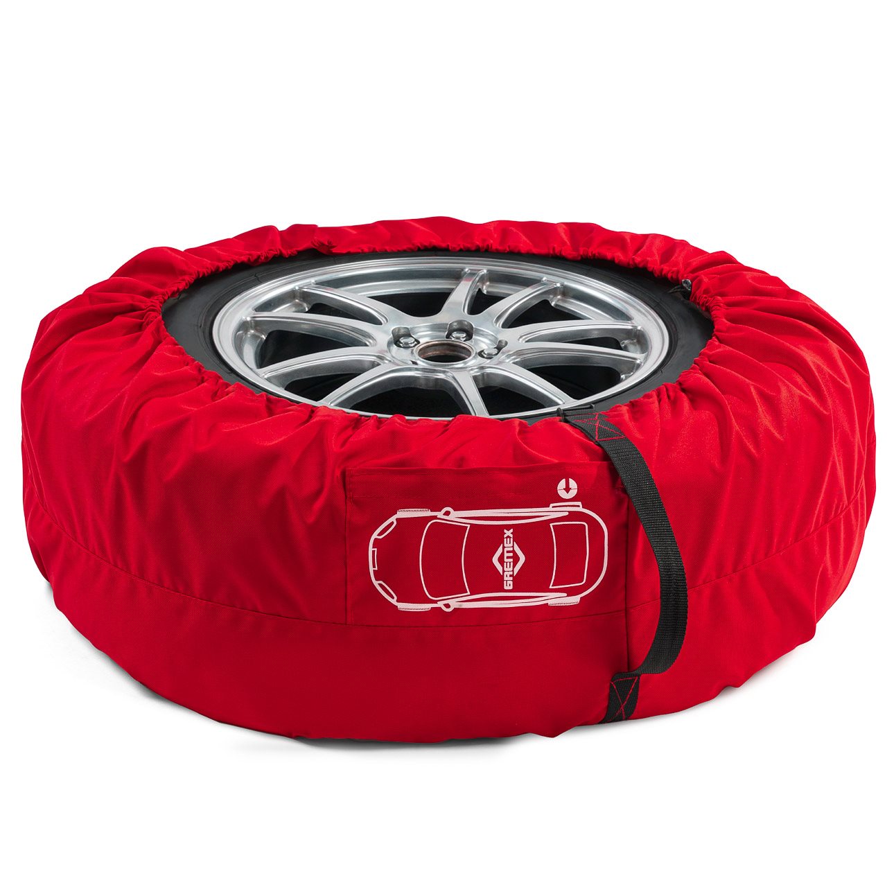 Pokrowiec ma schowane do wewnątrz wszystkie szwy przez co wygląda estetycznie. Dodatkowo posiada elastyczny ściągacz co zapewnia szybki montaż na kole oraz dodatkową oznaczoną kieszeń zamykaną na rzep