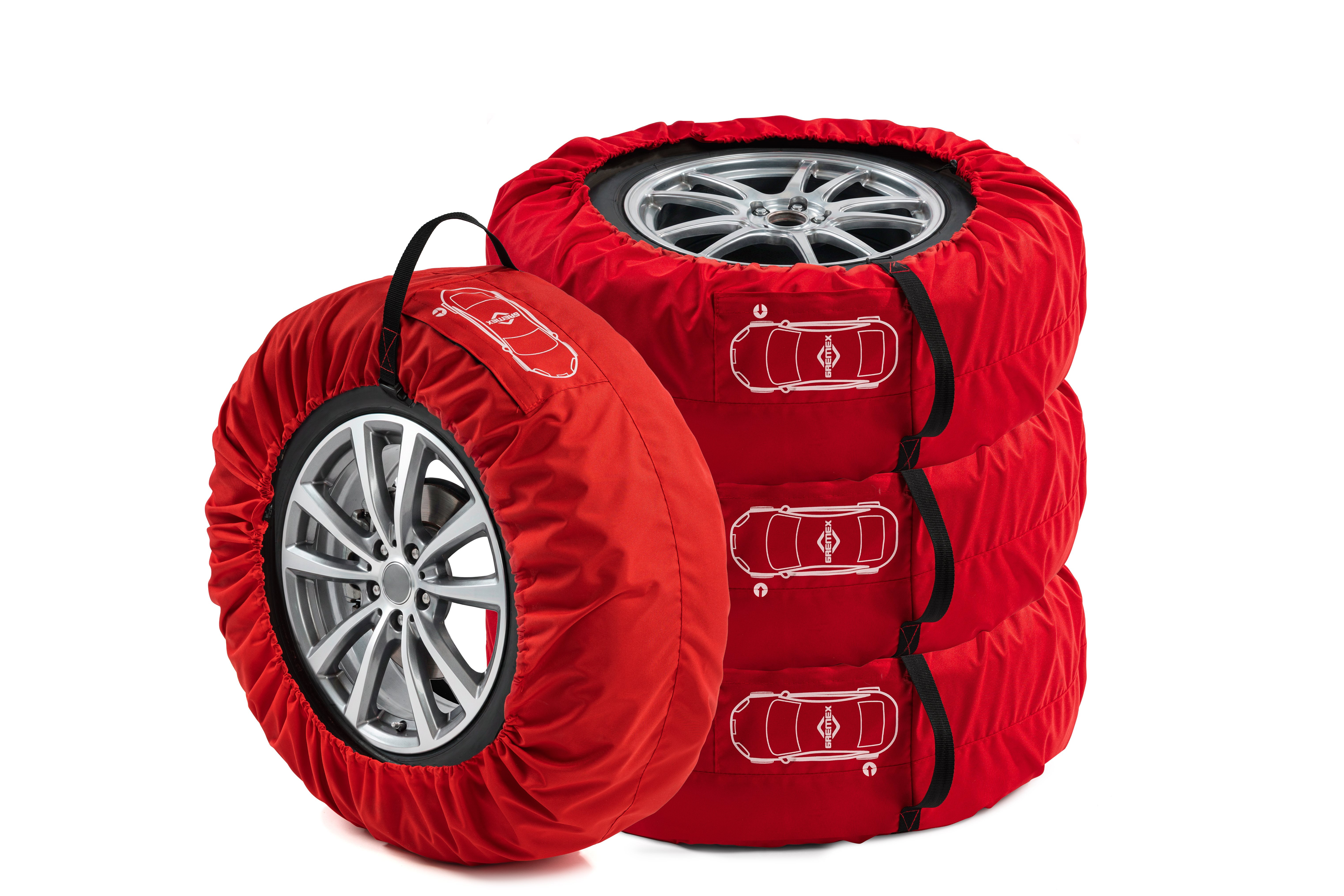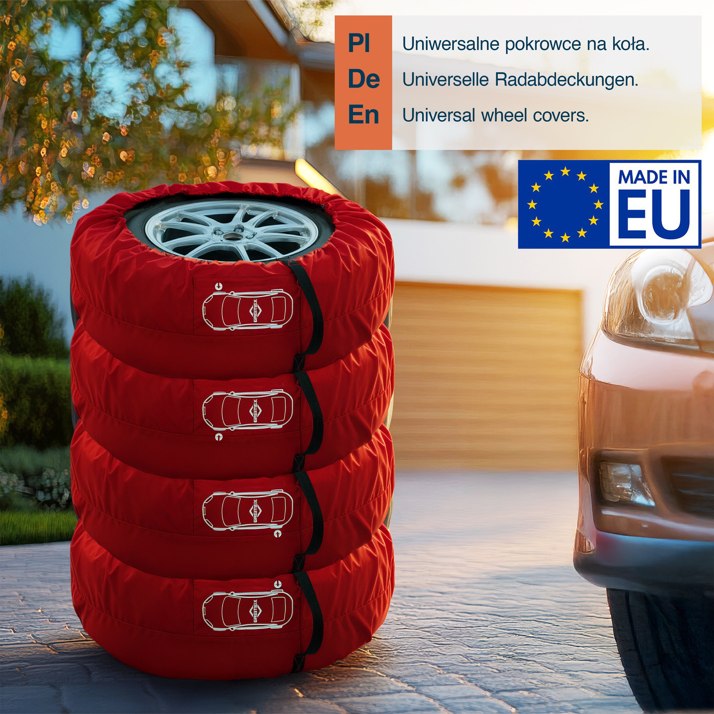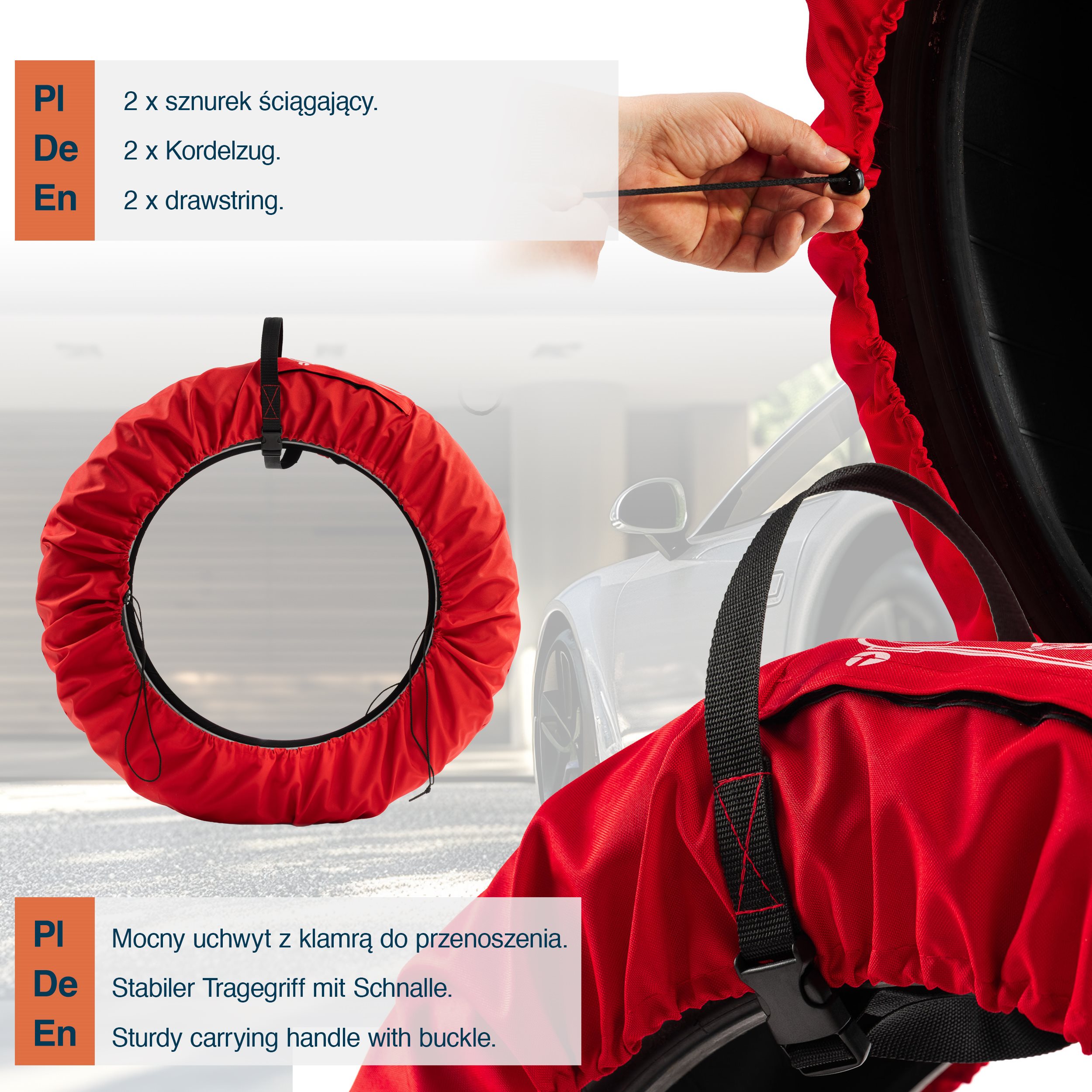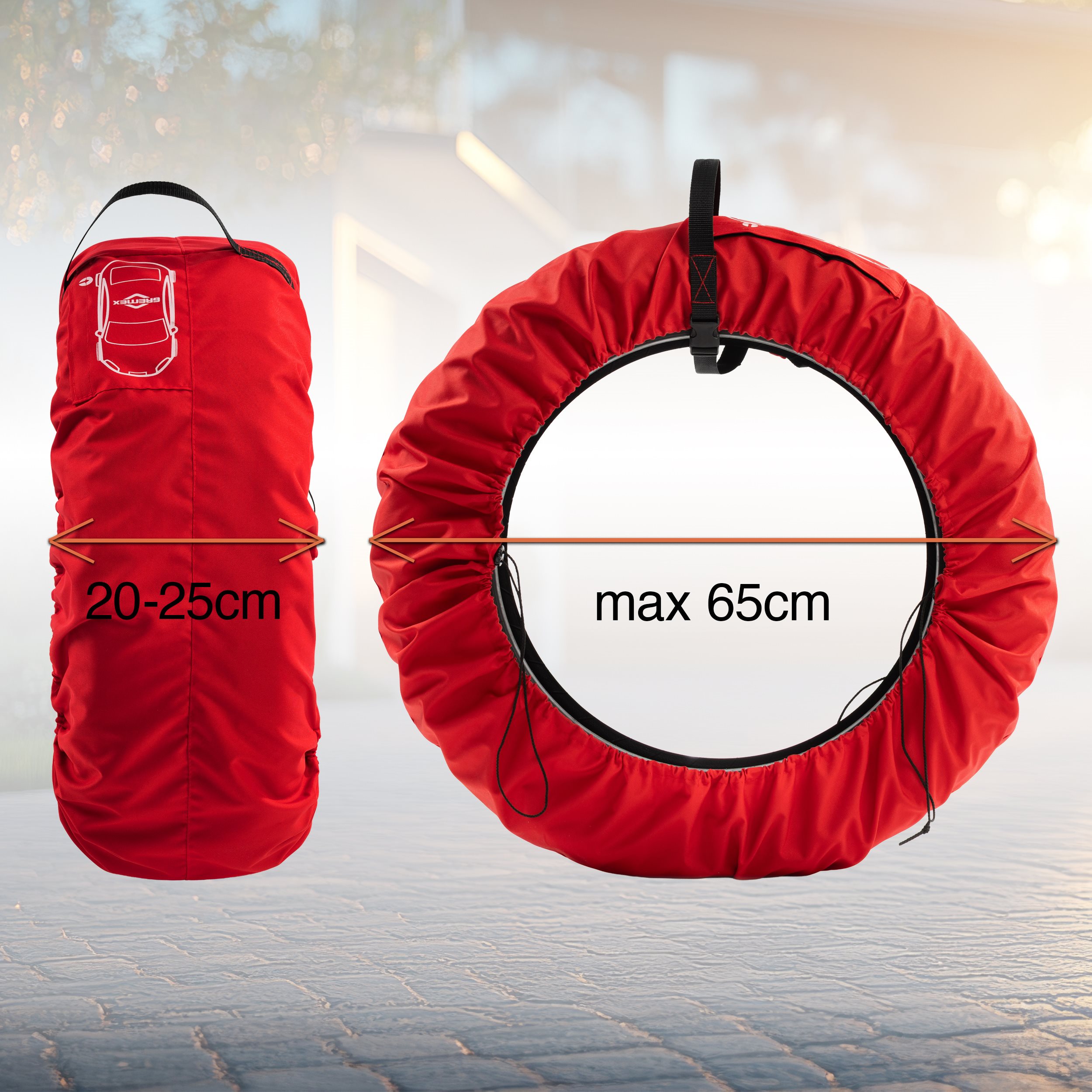 Uniwersalny zestaw 4 szt. pokrowców na koła zapasowe czerwony z klamrą