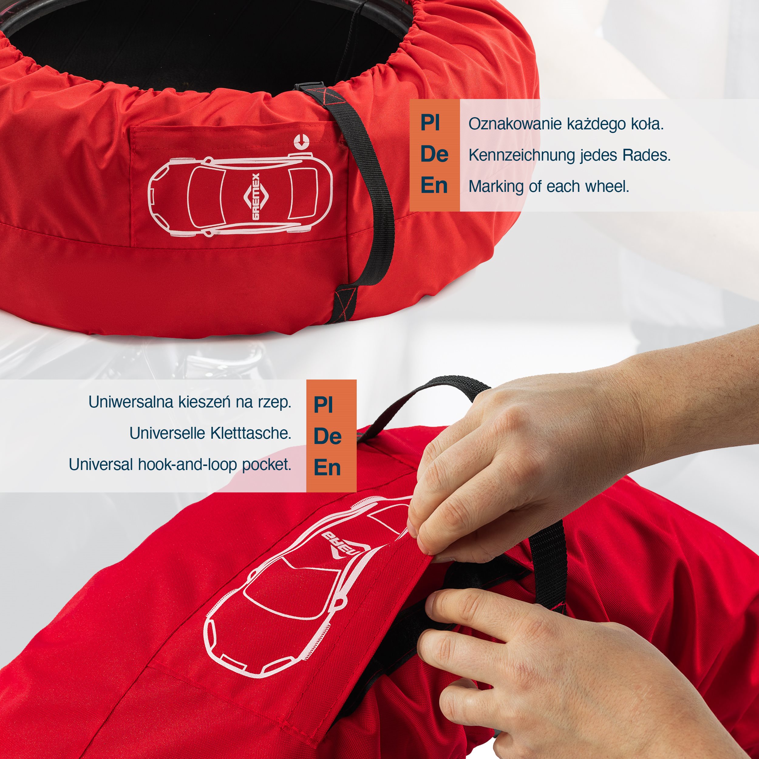 • praktyczna kieszeń z oznaczeniem koła